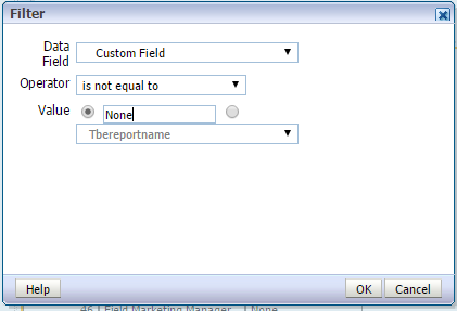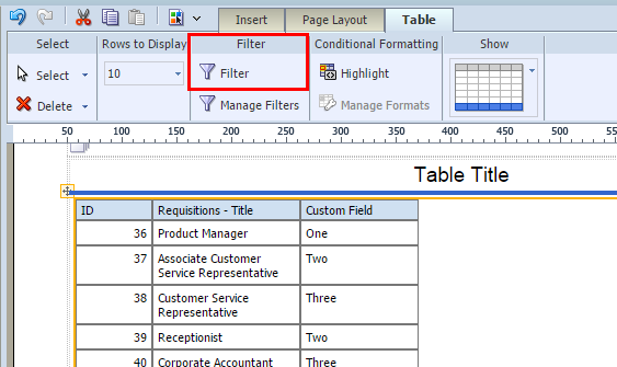 3 「OK」をクリックして「フィルタ」ポップアップを閉じると、フィルタが表に適用されます。レポート・デザイナの表は自動的に更新されません。