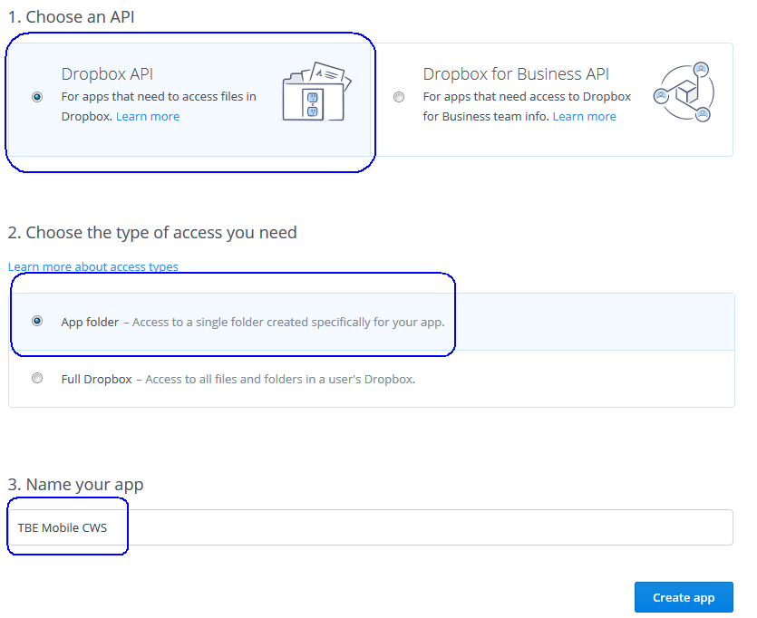 6 必要なアクセスのタイプの「App folder」をクリックします。