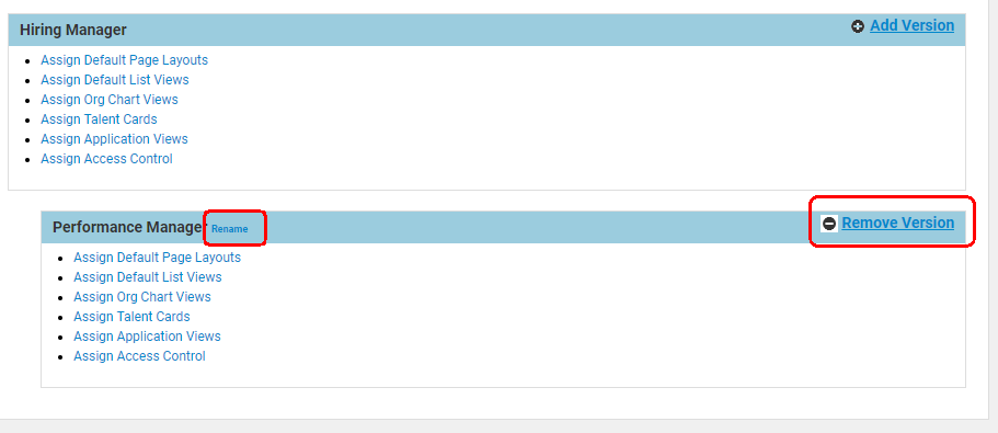 カスタム・ロールの作成 あるロールのユーザーに適用する、カスタム・ロールのバージョンを作成して、同じロールに属する他のユーザーとは、ページ・レイアウトやリスト・ビューの設定を大きく変えることができます。この機能を利用すると、当該ロールのユーザー全員に広く影響する、一括変更を容易に実行できます。 たとえば同じ「採用担当者」でも、アメリカ在住かカナダ在住かに応じて別々のグループにすることが考えられます。カナダの「採用担当者」は、「社会保障番号」フィールドではなく社会保険番号フィールドが必要であり、ページ・レイアウトも異なります。この機能を利用し、カナダの「採用担当者」に適用するロール・バージョンを作成すると、該当する担当者が作成して使用するレコードを簡単に変更できます。 他によくある使用方法として、「採用マネージャ」というロールがあります。「採用マネージャ」について、単にマネージャまたはパフォーマンス・マネージャと呼ばれるロール・バージョンを作成して、採用業務ではなく、パフォーマンス・レビューを重点的に担当するマネージャに割り当てることが考えられます。 カスタム・ロールを作成する手順: 1 「ユーザー」メニュー、「ロール」の順に選択します。 2 カスタム・バージョンを作成しようとするロールを決め、右にスクロールして「バージョンの追加」をクリックします。 3 「カスタム・ロール・タイトル」を入力し、「保存」をクリックしてください。 「ロール」の「バージョン」は、親ロールの子として表示されます。ページ・レイアウト、リスト・ビュー、アプリケーション・ビュー、アクセス制御の設定など、親の主な属性を継承します。将来、このロール・バージョンを削除した場合、そのユーザーは自動的に、親ロールに再割当されます。 4 前述の適切なリンクをクリックすることにより、ロール・バージョンは名前の変更や削除が可能です。ユーザーが割り当てられたロール・バージョンを削除しようとすると、ユーザーが割り当てられている旨と、このまま続行すると親ロールに割り当てなおされる旨の警告が現れます。 5 次の各項目をクリックして、作成したカスタム・ロール・バージョンに適用するデフォルト値を設定してください。 ・ デフォルト・ページ・レイアウトの割当 ・ デフォルト・リスト・ビューの割当 ・ アプリケーション・ビューの割当 ・ アクセス制御の割当 6 「保存」をクリックすると、確認を求められます。「OK」をクリックします。