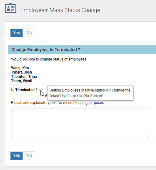 ユーザー・レコード作成の効率化 タレント・センターで、従業員は、Recruit、Perform、Onboardのトランザクションにアクセスできます。「従業員」レコードを対応する「ユーザー」レコードにリンクすることで、ある「従業員」に対するすべてのトランザクションをタレント・センターで表示できます。 「アクティブ」ステータスの「従業員」レコードが追加または編集されたときに、「ユーザー」レコードが自動的に作成またはリンク付けされるようにする設定があります。既存の「ユーザー」レコードの「従業員」レコードに対するリンク付けは、Eメール・アドレスを基準にして行われます。Eメール・アドレスで既存の「ユーザー」が見つからない場合は、基本情報を使用して新しい「ユーザー」レコードが作成されます。 この機能では、作成(または編集)時に「従業員」レコードと「ユーザー」レコードの間にリンクが設定されるため、時間の節約になります。この設定が機能するためには、「従業員」レコードにEメール・アドレスが含まれる必要があります。また、この機能により、Taleo Business Edition Recruitで使用するために、新規従業員に対応する「ユーザー」レコードを確実に作成できます。 注意: この設定は、デフォルトでは有効ではありません。設定を有効にする前に、どのように動作するかを確認してください。この設定は、候補者を採用し、その結果従業員レコードを作成するRecruitのお客様に最も有用ですが、これらの従業員のうち何人かは、Taleo Business Editionにアクセスする必要もあります。「ユーザー」レコードは同時に作成できます。TBEへのログインが必要になる従業員の割合が少ない場合には、この設定のメリットは大きくない可能性があります。 ・ この設定が有効な場合、「アクティブ」ステータスの「従業員」レコードが作成または編集されると、「ユーザー」レコードが作成またはリンク付けされます。リンク付けは、Eメール・アドレスをマッチングすることで行われます。 ・ 新しく作成された「ユーザー」レコードの「名」、「姓」、ユーザー名、Eメール・アドレスは「従業員」と同じになり、「採用マネージャ」のロールが割り当てられます。 ・ 既存の「ユーザー」レコードのEメール・アドレスが、保存している「従業員」レコードと同じ場合、「従業員」レコードは、作成中の新しいレコードではなく、既存の「ユーザー」レコードにリンクされます。 ・ 候補者から従業員への変換プロセスで「従業員」レコードが作成された場合、この「従業員」がアクティブ・ステータスで作成された場合と同じ方法で、「ユーザー」レコードが自動的に作成またはリンク付けされます。「ユーザー」レコードと「従業員」レコードはリンク付けされます。同じユーザー名とEメール・アドレスが使用されます。それ以外の場合は、「従業員」が後からアクティブ・ステータスに設定されたときに、「ユーザー」が作成またはリンク付けされます。 ・ 従業員に対して適用された「ユーザー」作成/リンク付けプロセスは、システムに手動で、インポート経由で、またはAPI経由で追加されます。「従業員ワークフロー」に基づいて「従業員」がアクティブ・ステータスとして考慮され、Eメール・アドレスが含まれているかぎり、「ユーザー」レコードも作成またはリンク付けされます。 ・ 複数の従業員のステータスがインポートまたはリスト・ビューによって非アクティブからアクティブに変更された場合、「ユーザー」レコードも作成またはリンク付けされます。 ・ これらすべてのケースで、「ユーザー」レコードのロールには、「採用マネージャ」と「求人採用マネージャ」のプロパティが選択されます。 ・ その後「従業員」レコードが手動で、リスト・ビューから、またはインポートによって非アクティブ・ステータスに更新された場合、「ユーザー」レコードは「アクセス権限なし」ロールに変更されます。1つ以上の「従業員」レコードのステータスを、リスト・ビューで非アクティブ・ステータスに変更した場合、ユーザー・ロールが「アクセス権限なし」に変わることを示す通知が表示されます。 ・ 「従業員」レコードが削除された場合(お薦めしません)、「ユーザー」レコードも「アクセス権限なし」ロールに変更されます。 設定を有効にする手順: 1 「管理」、次いで「組織」を選択します。 2 「システムおよびEメールの設定」をクリックします。 3 「ユーザー・インタフェース設定」セクションの下部で、「新規従業員用にユーザーを作成」のオプションを選択します。 4 「保存」をクリックします。 5 「管理」を選択し、次に「Performのカスタマイズ」または「オンボードのカスタマイズ」を選択して、候補者を変換するときのマッピングを確認します。 6 「プロセスのカスタマイズ」セクションで、「候補者から従業員への変換プロセス」をクリックします。 7 ページ上部で、新しい