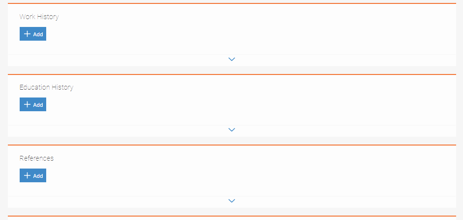 職歴などの更新 管理者は、「自分の情報」ページにセクションを追加し、職歴、学歴、居住歴、照会先、証明書の情報を追跡できます。これらの各セクションは同様に機能します。 1 追加するエントリのタイプの「追加」ボタンをクリックします。 2 アスタリスクで示された必須情報と、入力するその他のフィールドをすべて入力します。 3 「提出」ボタンをクリックします。 4 作成したエントリを削除または編集する必要がある場合、該当するボタンをクリックします。 注意: レコードを表示するには、まずセクションを展開する必要があります。