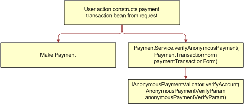 You can customize the validation of anonymous payments for your payment validation requirements. The Payment service invokes the anonymousPaymentValidator implementation to verify an anonymous payment. Figure 25 shows the anonymous payment validation.