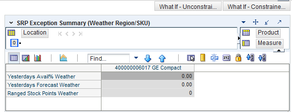Table 7-3 Measures: SRP Exception Summary (Weather Region/SKU) Interactive View