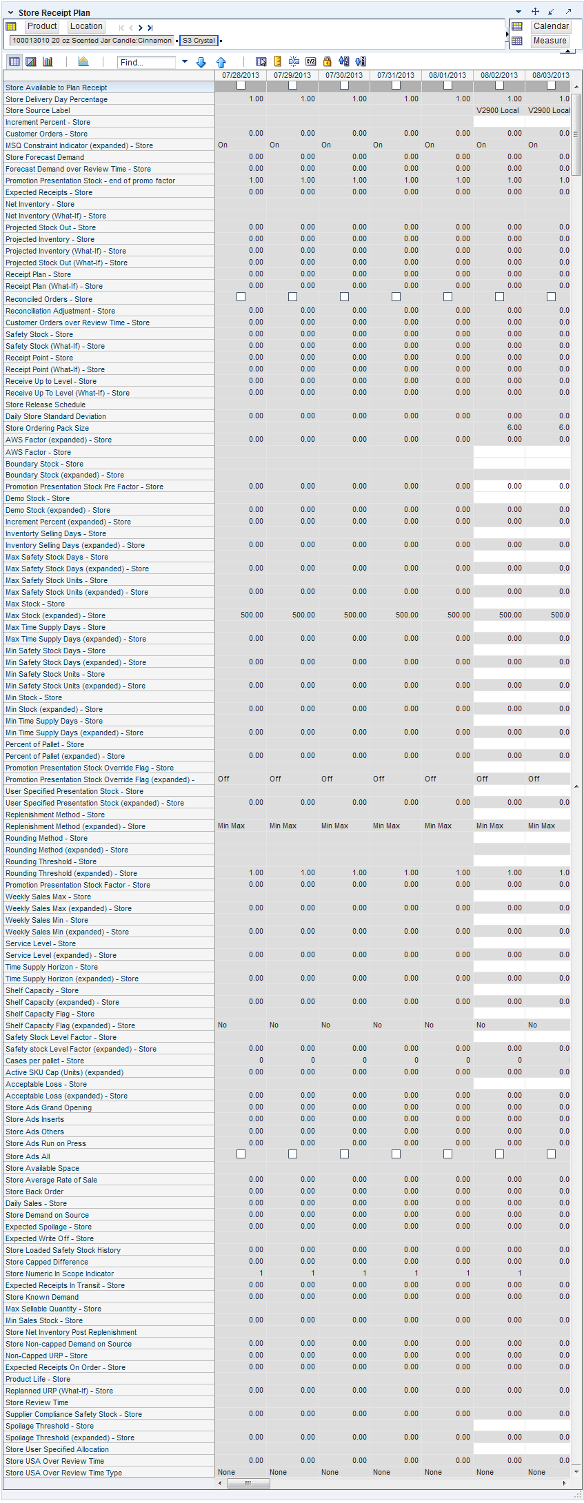 The Store Forecast Demand is the forecast of the store's future sales. Note: Demand Forecast is loaded from an external forecasting system. |