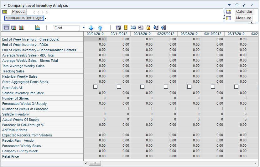 End of Week Inventory - Regional Distribution Center (RDC) represents the sum a SKU's Projected Inventory on the last day of the week at all warehouses with a warehouse type of RDC. |