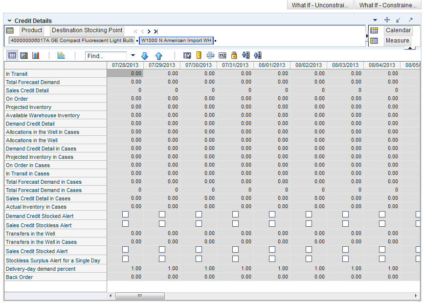 End of Week Inventory - Deconsolidation Center represents the sum of a SKU's Projected Inventory on the last day of the week at all warehouses with a warehouse type of Deconsolidation Center. |