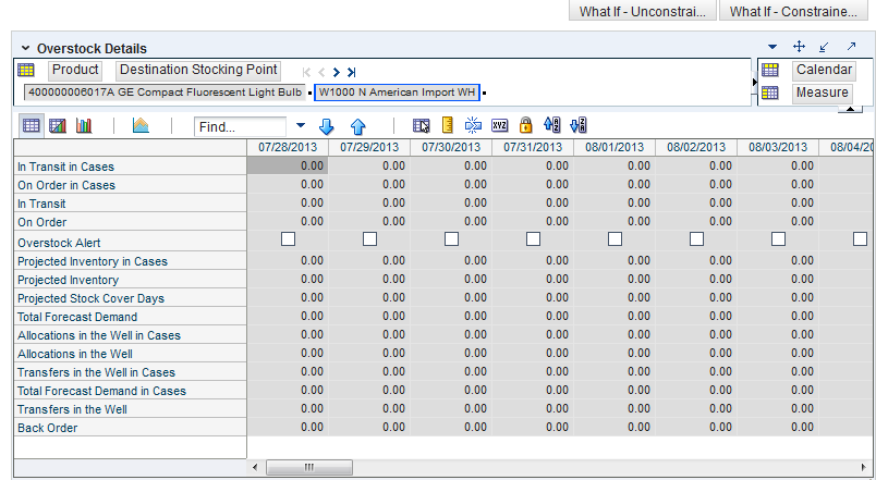 This view displays detailed overstock information at the SKU/Store/Day level.