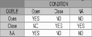 Select ‘Open’ to open the listed condition, ‘Close’ to open the listed condition, or ‘NA’, if the condition is not applicable. |
