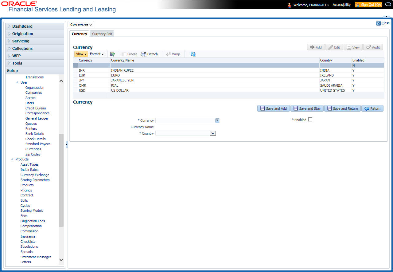 Check this box to enable the organization. Note: Only one enabled organization is currently allowed by Oracle Financial Services Lending and Leasing. |