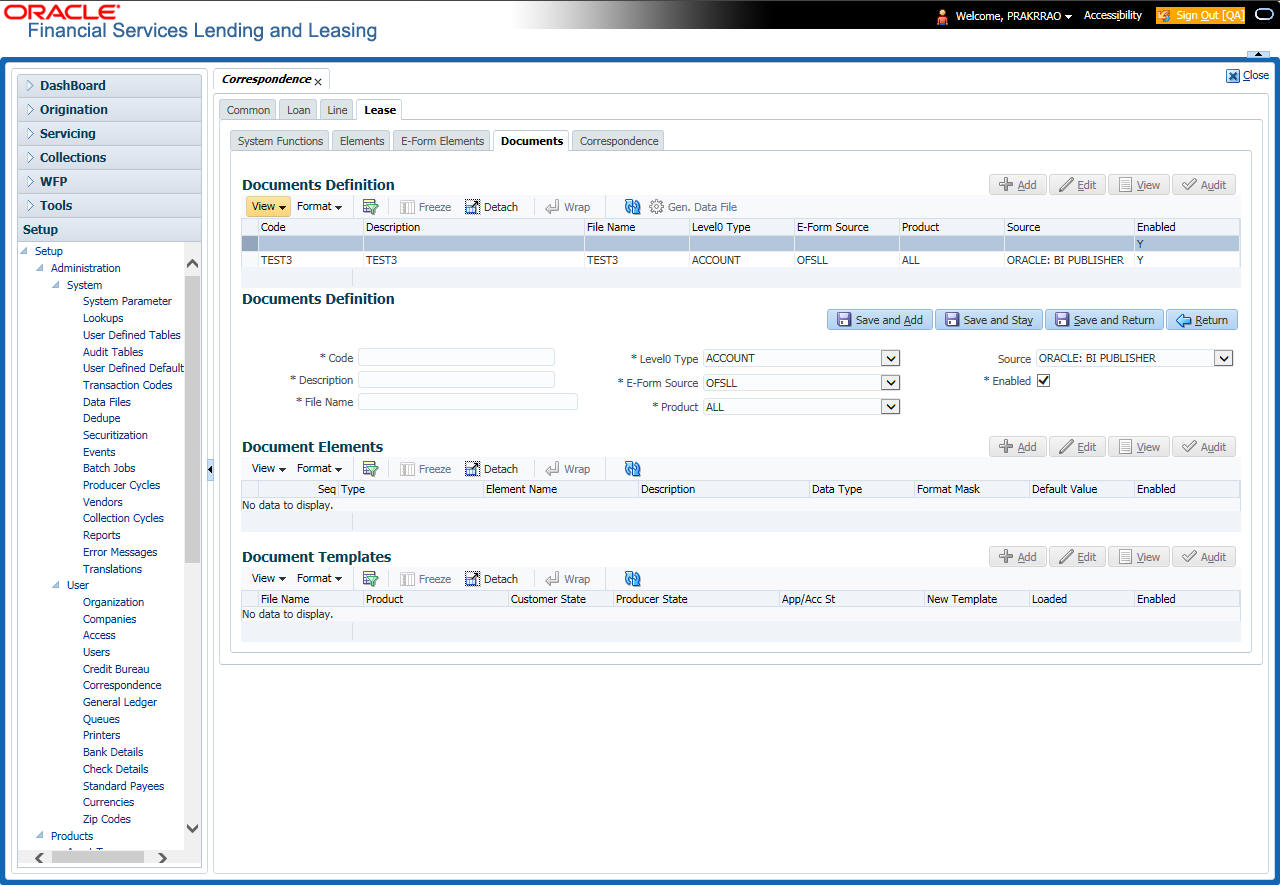 For Lease origination correspondences that can be faxed, the system generates a PDF document and will send to the fax server defined in System Parameters. |