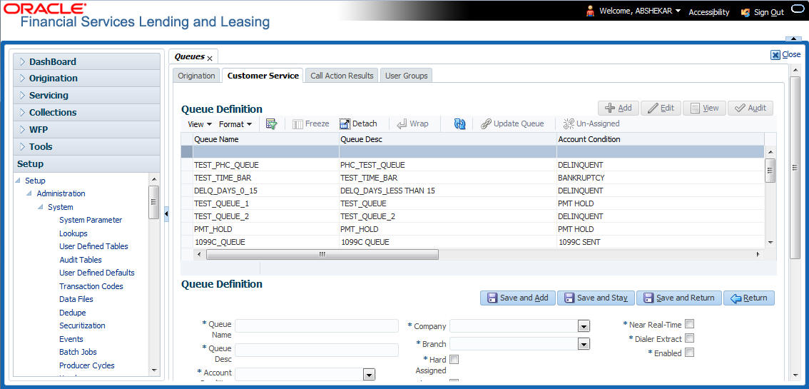 When you select Update Queue on the Customer Service screen (or Oracle Financial Services Lending and Leasing processes the CUSTOMER SERVICE QUEUE PROCESSING nightly batch) each of the two Hard Assigned users receives 20 accounts, while the one that isn’t marked as Hard Assigned receives zero.