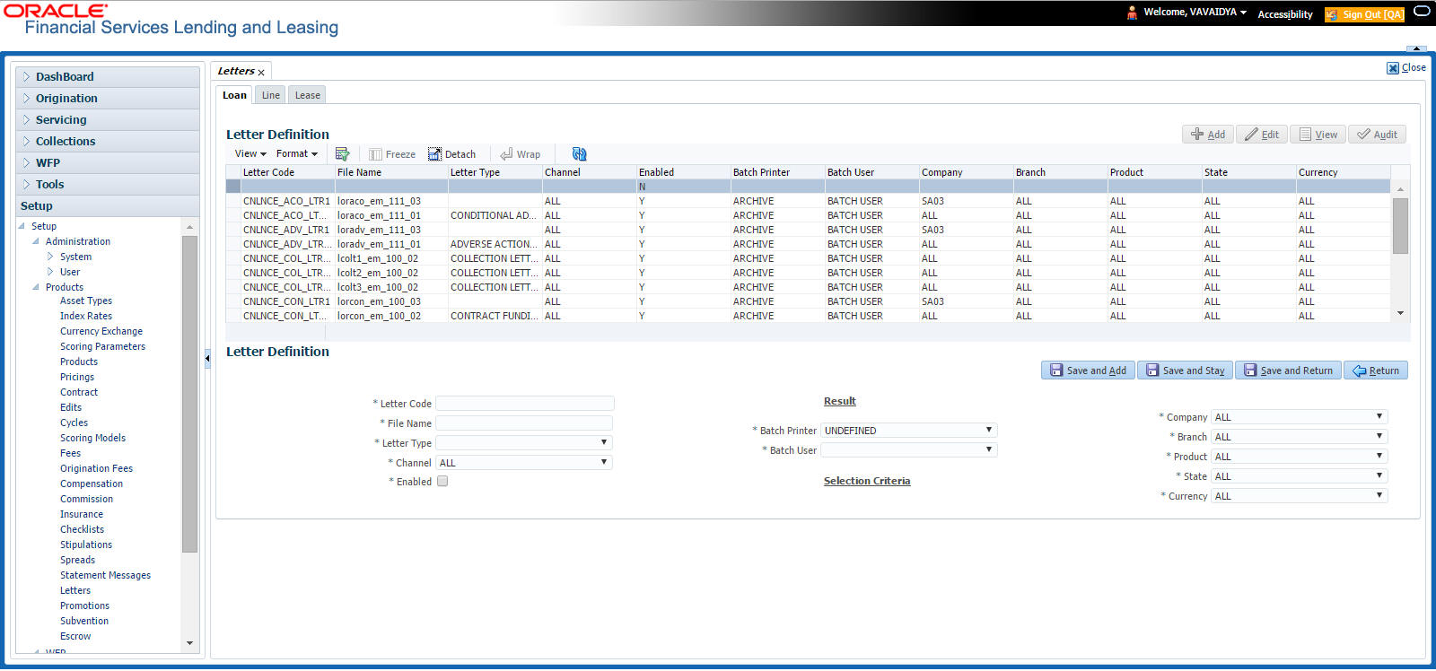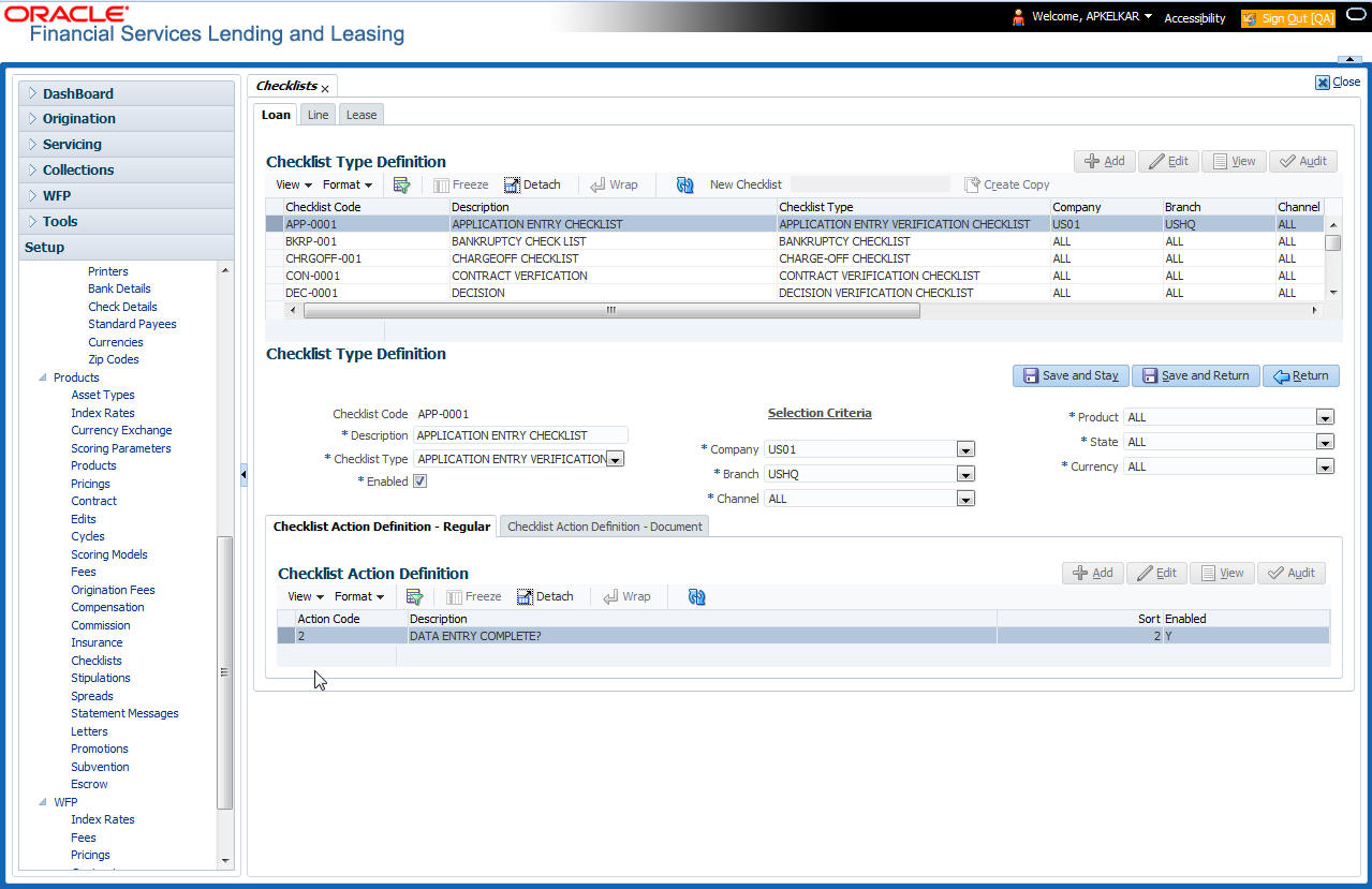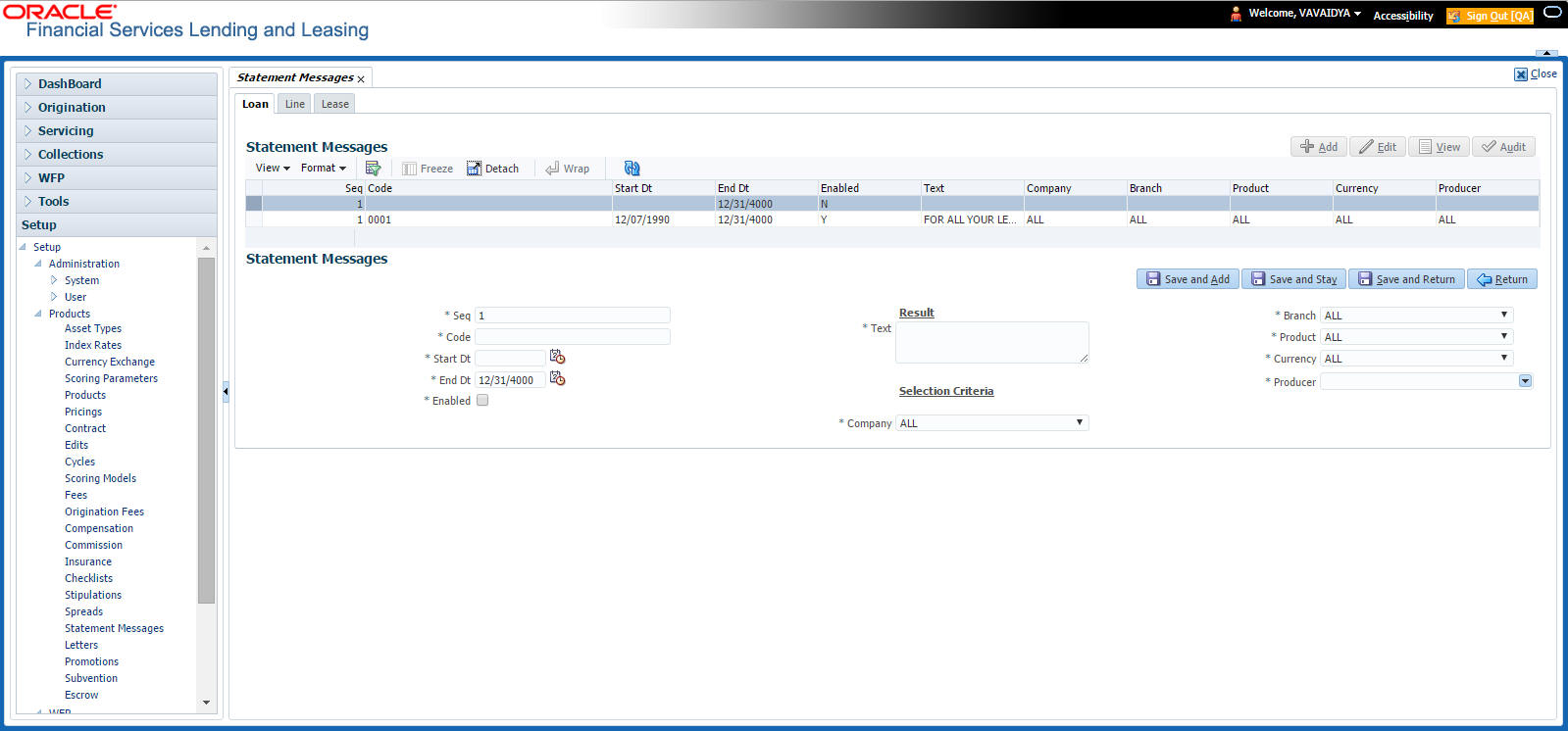 Under the Setup master tab’s drop-down link bar, the product Setup link opens screens that enable you to configure the basic business guidelines necessary to support one or more products in the system. This includes defining the types of collateral your company supports, creating lending instruments, and determining what is included in credit bureau reporting. Setting up the Products screens requires a thorough understanding of the current rules of your business and must be completed before you can use Oracle Financial Services Lending and Leasing. The Products drop-down link opens screens to record data of all the products supported by the system and contains the following links: