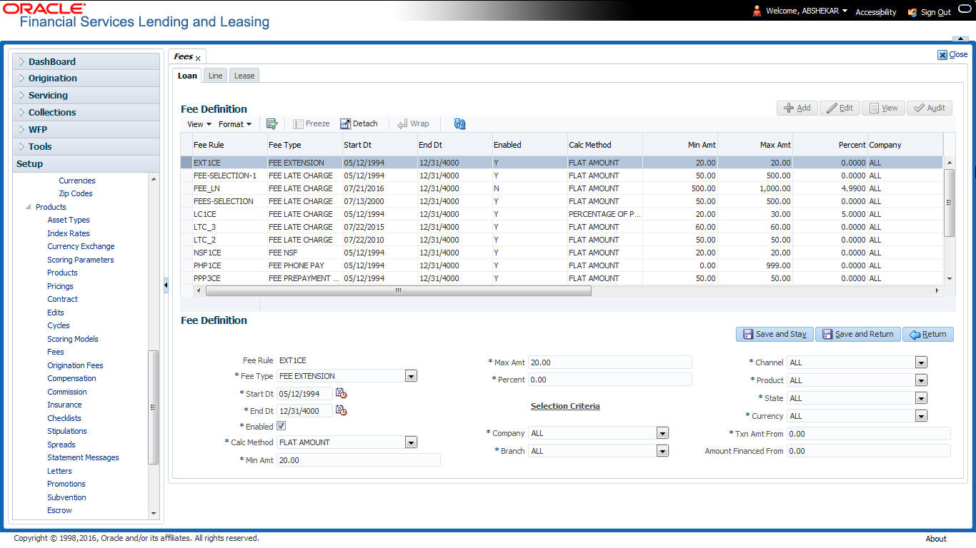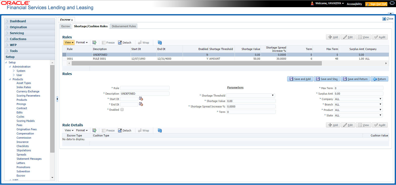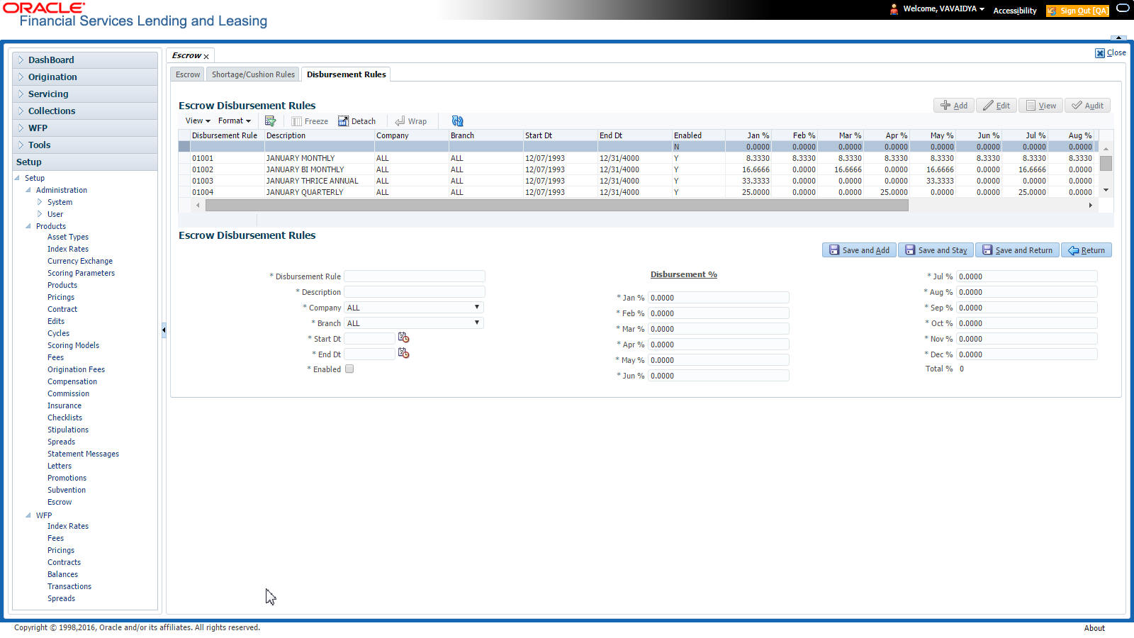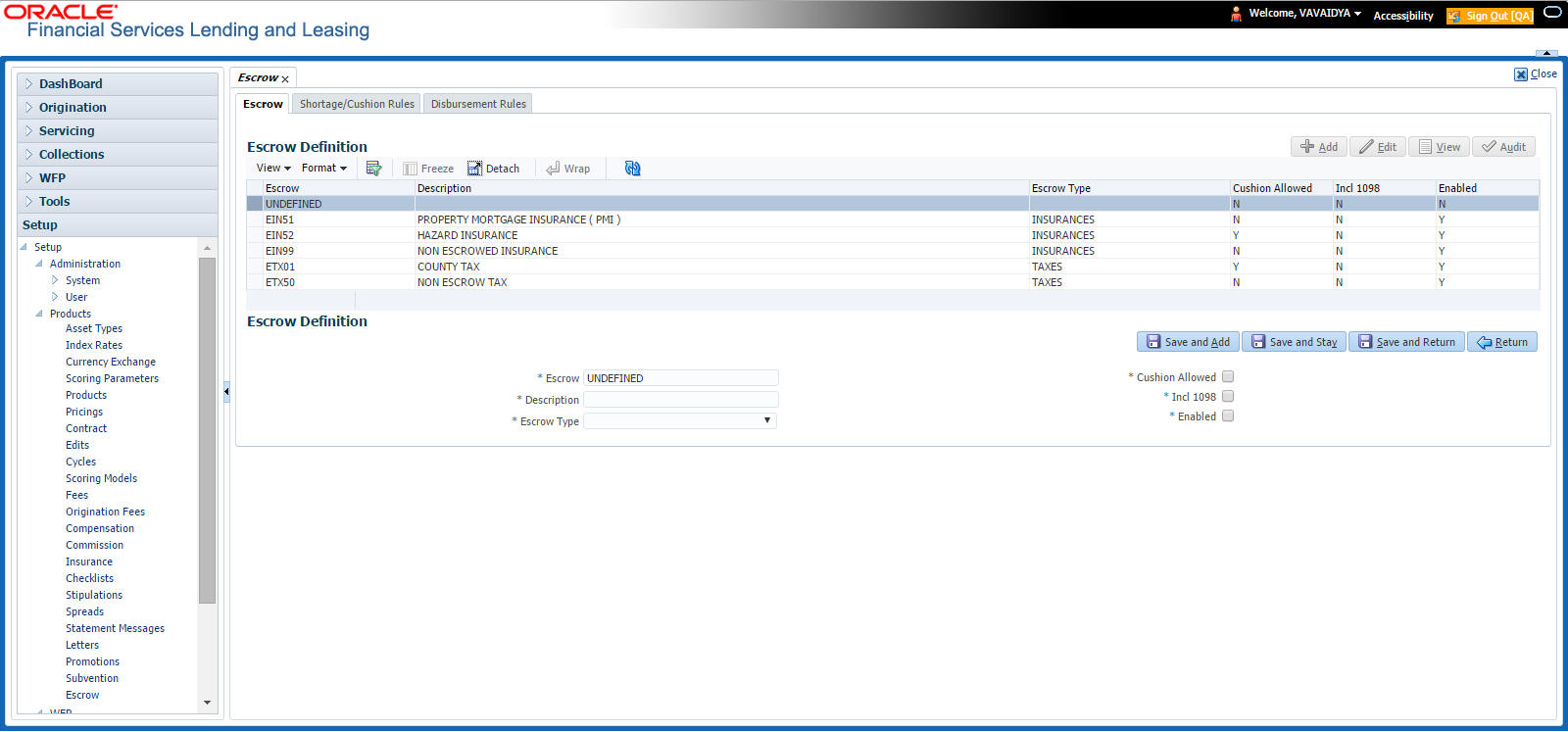 Oracle Financial Services Lending and Leasing provides tax and insurance escrow for loans. The Escrow screen contains subsection that allow you to set up these features.