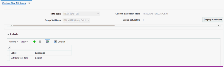 In the Attribute Labels Maintenance screen, select the relevant language using the Language LOV button, and then click Show Labels.