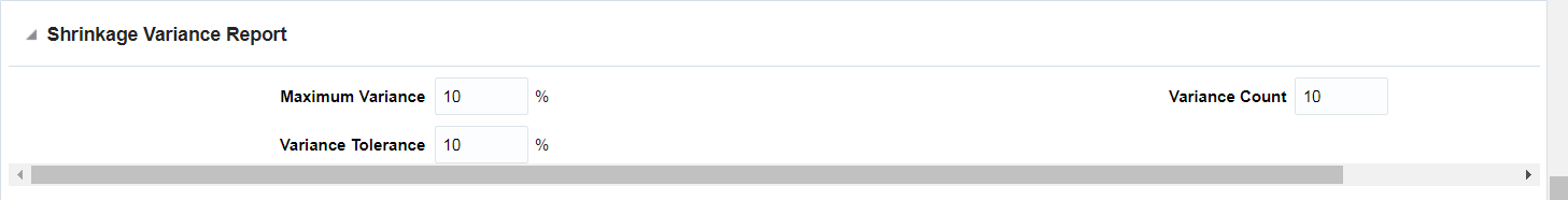 The Shrinkage Variance Report section contains the maximum variance, variance tolerance, and variance count options.
