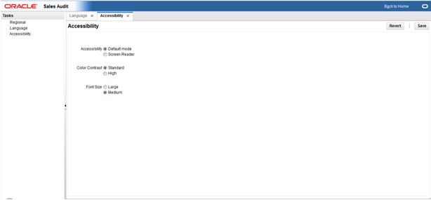 ReSA provide the ability to switch between the above accessibility support levels in the application, so that users can choose their desired type of accessibility support, if required. ReSA exposes a user preferences screen in which the user can specify the accessibility preferences/mode which will allow the user to operate in that mode.