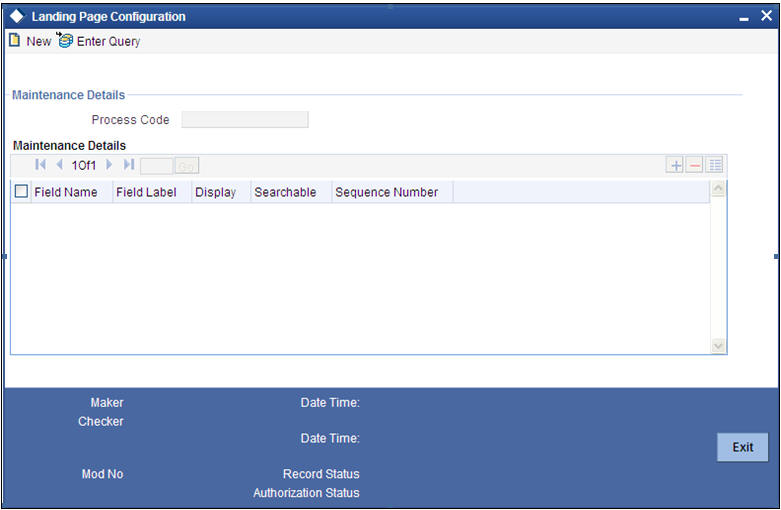 You can define the process-flow specific additional fields in the ‘Landing Page Configuration’ screen, which you can invoke by typing SMDLNDPG’ in the field at the top right corner of the Application tool bar and clicking the adjoining arrow button. The following screen is displayed: