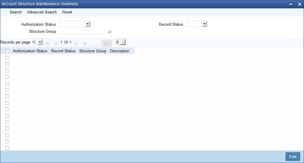 You can view the summary details of the account structure in the ‘Account Structure Maintenance Summary’ screen.