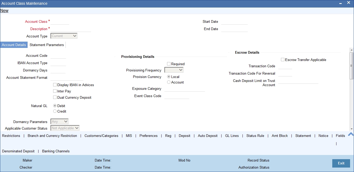 You need to specify the account statement format for Savings and Nostro types of account classes in the ‘Account Class Maintenance’ screen. You can invoke the ‘Account Class Maintenance’ screen by typing ‘STDACCLS’ in the field at the top right corner of the Application tool bar and clicking the adjoining arrow button.