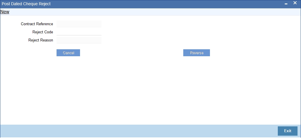 Specify a unique reject code. This code can be used to identify the reason for rejecting or cancelling a post dated cheque.