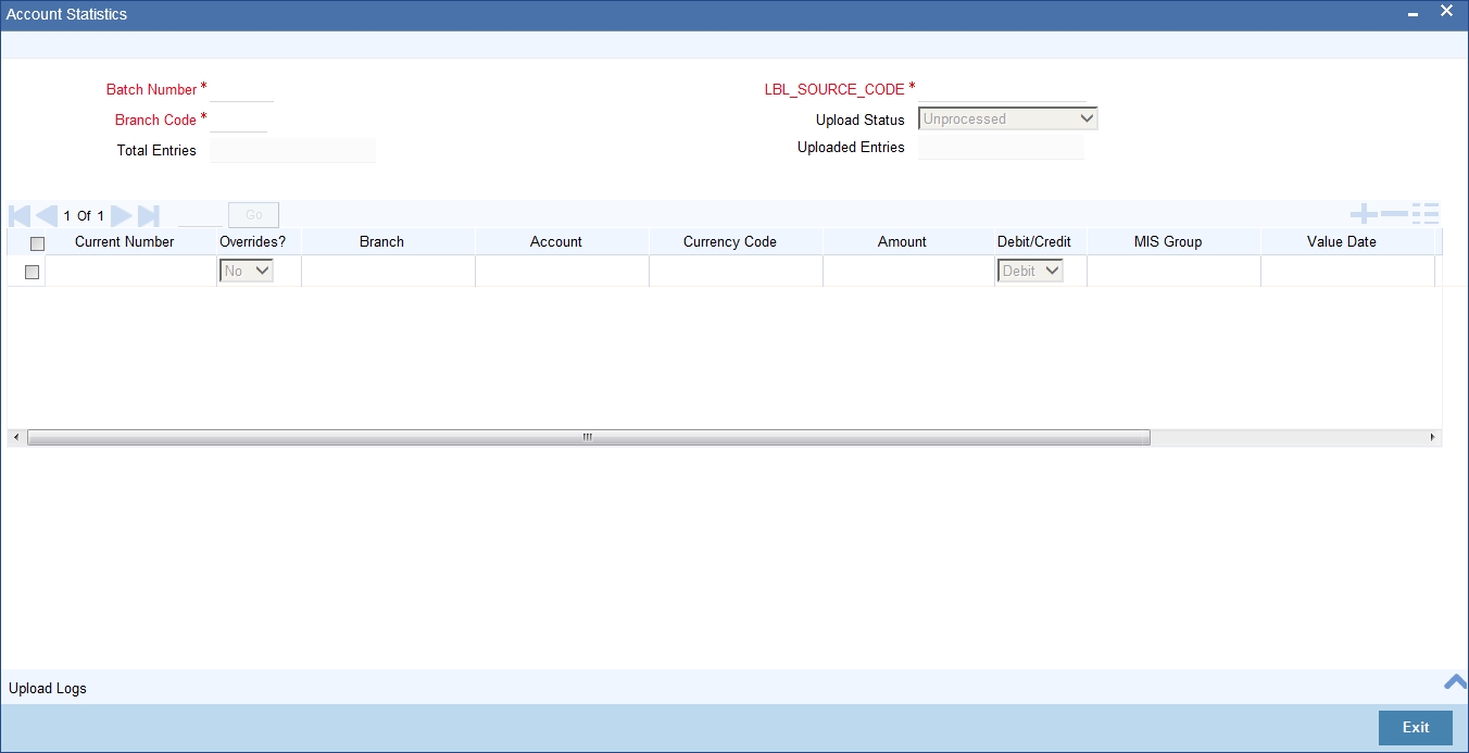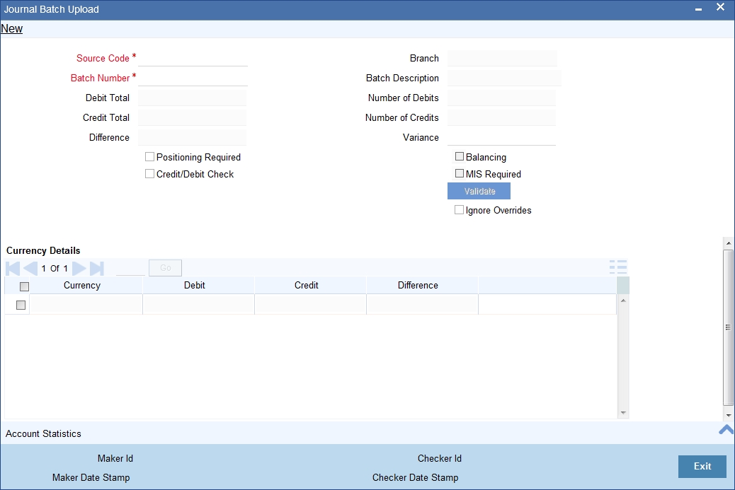 You can indicate whether the entries being uploaded should be balance at the branch level. If you have enabled this option and if the batch does not balance, a message is displayed at the end of the upload session.
