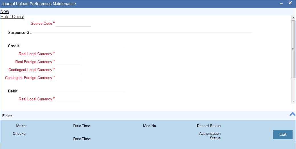 You can set your preferences specific to journal upload using ‘Journal Upload Preferences Maintenance’ screen.