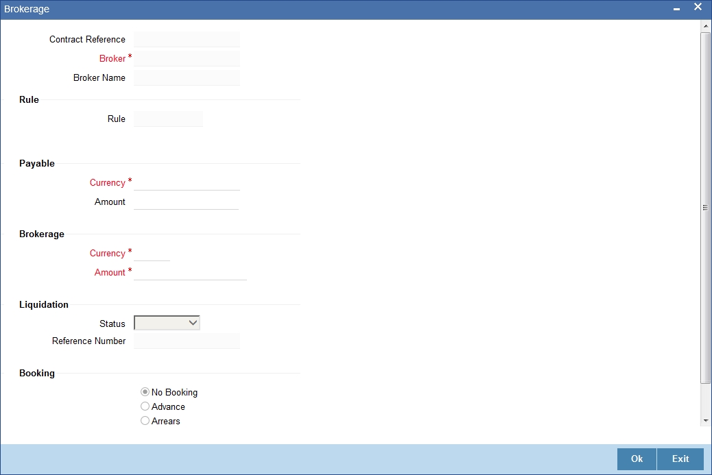 Brokerage | Click this icon to indicate brokerage details applicable to the contract. | |||