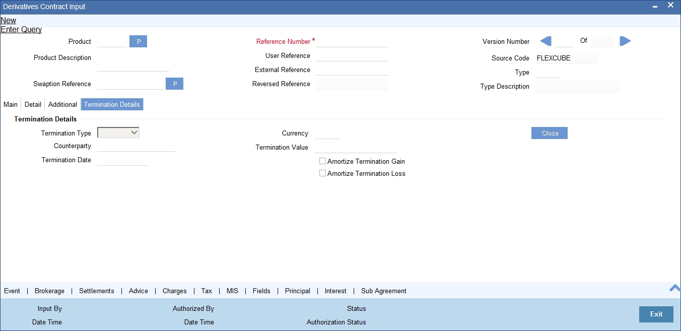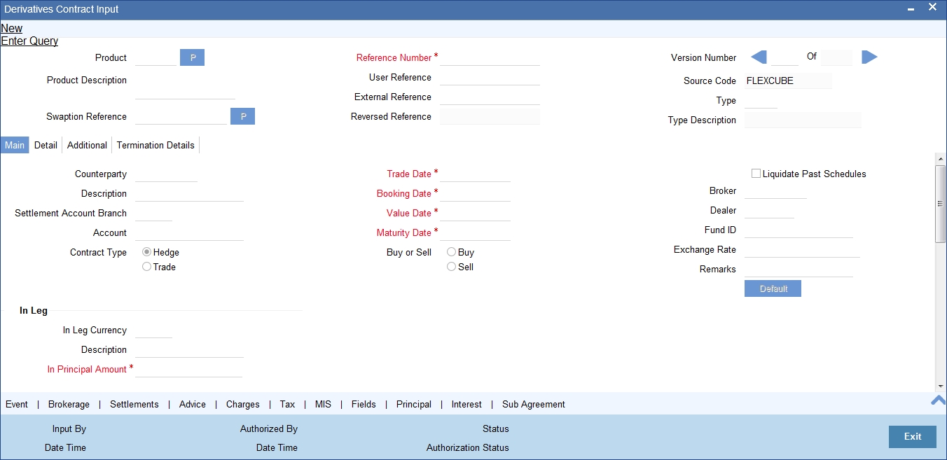 When you enter a contract in Oracle FLEXCUBE, it is assigned a version number of 1. From then on, each amendment of the contract results in its next version. When you come to the ‘Derivatives Contract Input Detailed’ screen, the latest version of the contract will be displayed.