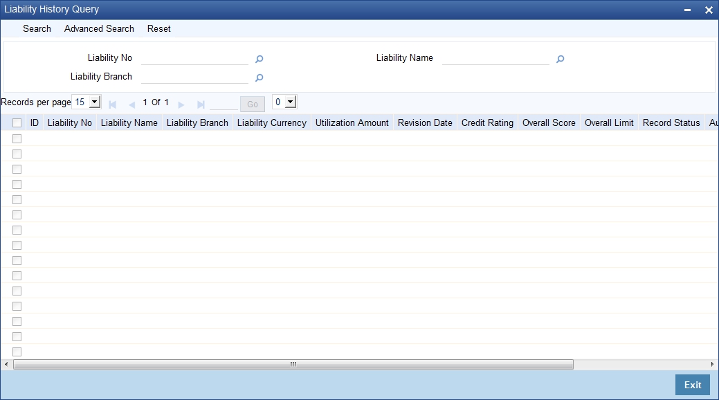 The ‘Liability History Query’ screen allows you to query for records based on the following parameters: