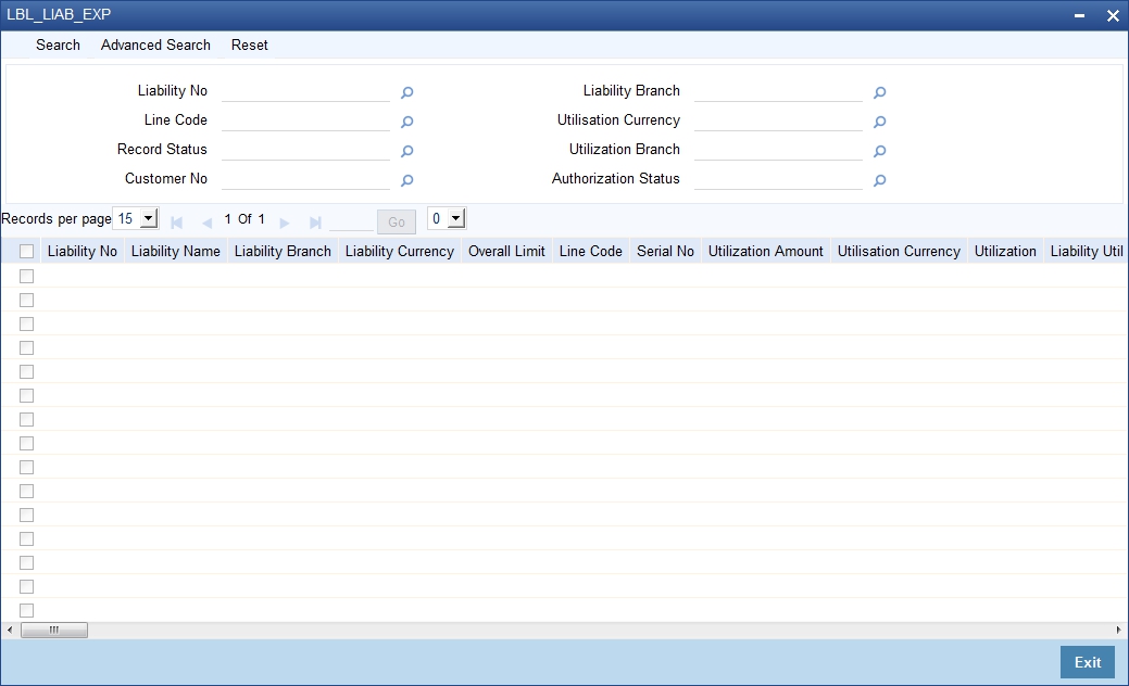 The total number of exposure for the customer can be viewed. It also shows the Sum of Amount Utilization in local currency/ branch currency.