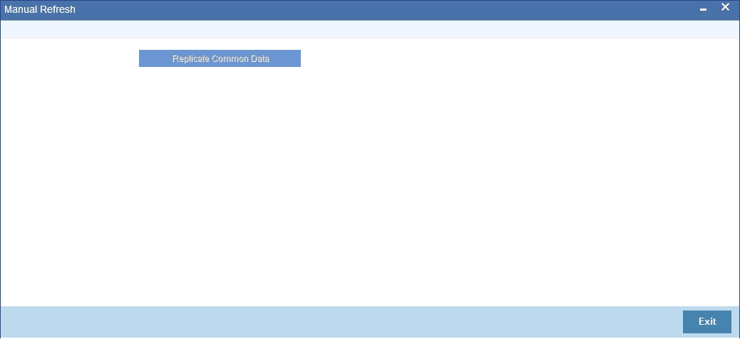 You can replicate records from branch manually on an ad-hoc basis using the 'Manual Refresh' screen. You can invoke this screen by typing ‘STDBRREF’ in the field at the top right corner of the Application tool bar and clicking on the adjoining arrow button.