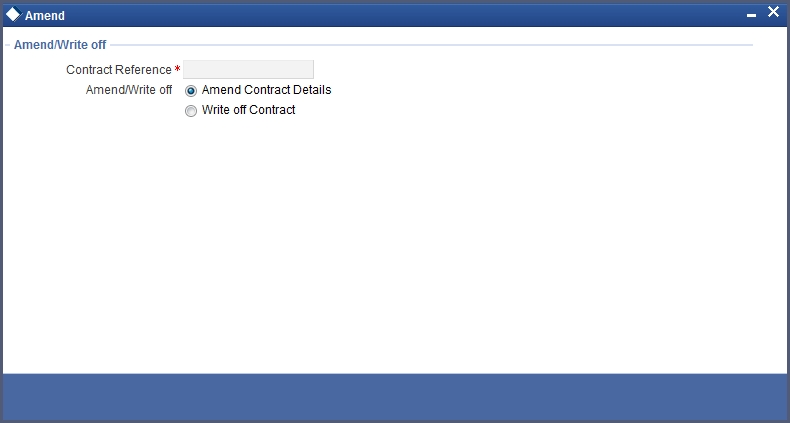 If you want to change the details of an authorized contract, you can unlock the contract by selecting the ‘Unlock’ option from the Actions Menu, or click unlock button in the toolbar. The ‘Amend’ screen will be displayed.