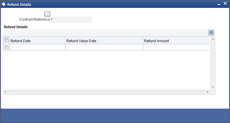 For refunding the contract, select ‘Refund’ option and click ‘Ok’ button. The following screen will be displayed: