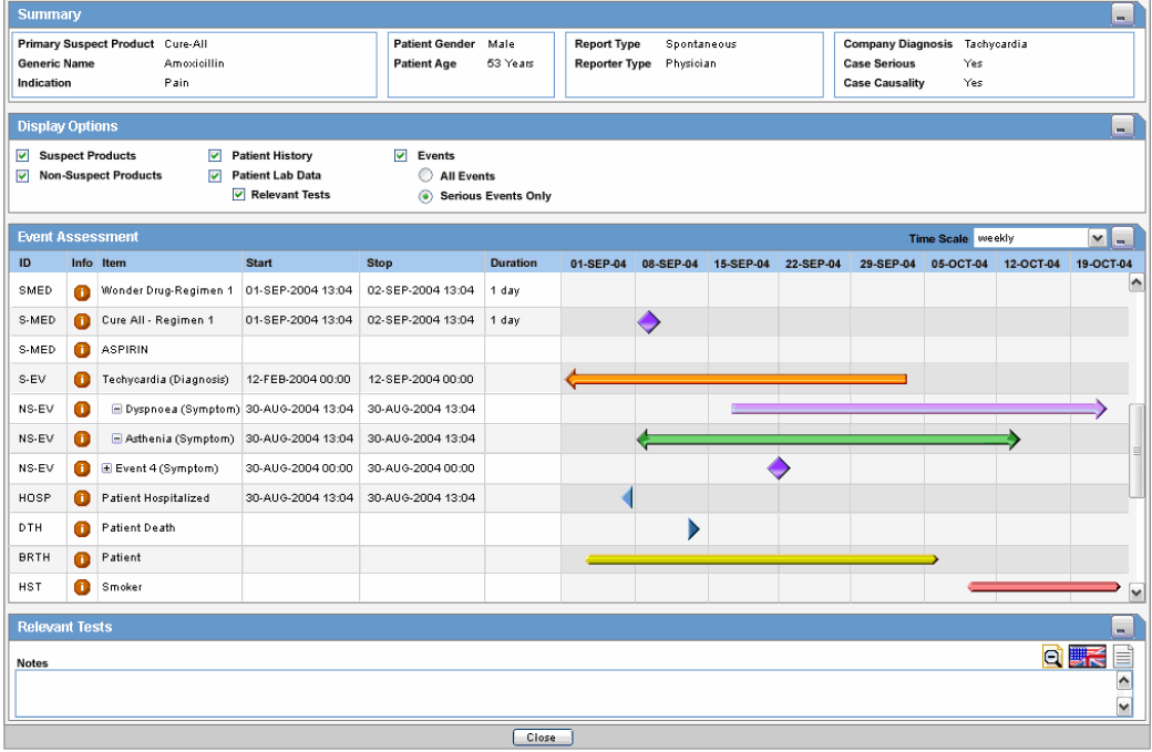The information displayed in the Temporal View tab is taken from the information entered in the Case Form section.