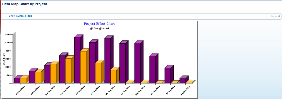 Based on your filters, this report displays project effort by project. It shows the planned and the actual effort.