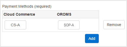 Oracle Retail Order Management uses payment methods that are identified with unique integers. For integration, Commerce Cloud Payment Methods are mapped to Oracle Retail Order Management numeric payment methods.