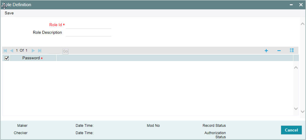 Specify the role assigned to the user for the selected branch. The option list displays all valid roles maintained in the system. Choose the appropriate one.
