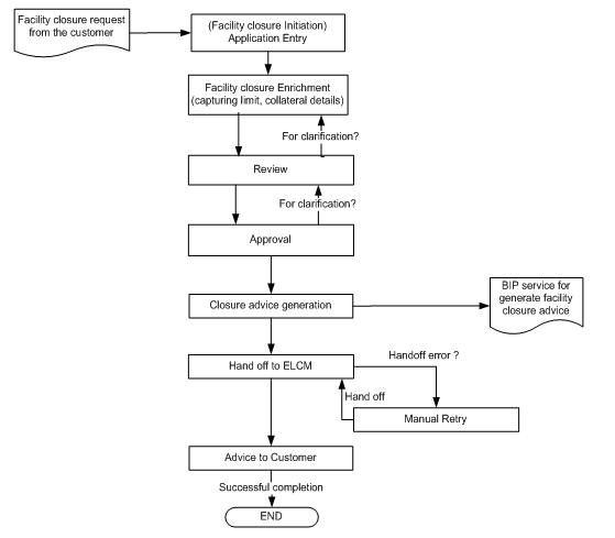 In this stage the system will automatically invoke the DB adaptor call to hand off the Facility closure details to ELCM.