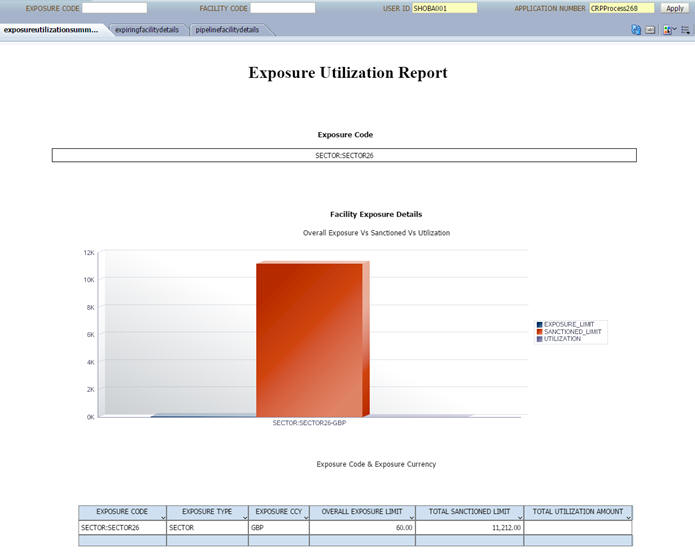 This report displays the overall exposure and utilization of the exposure to which the pipeline facility belongs to. It also displays the sum of the facility amount which is sanctioned or approved for that specific exposure category.