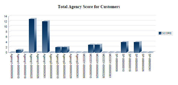 Another qualitative factor based on which the pipeline facilities of prospective customers can be analysed, are the grades and scores provided by external agencies. The external agency grades and scores are captured during the Credit Recommendation and Review Stage of the Credit Appraisal Management process. Click the ‘External Agency Analysis Report’ to view the list of prospective customers whose facilities are awaiting approval, which is grouped based on the customer’s score and the customer’s credit rating grade provided by an external agency. This report displays the following data: