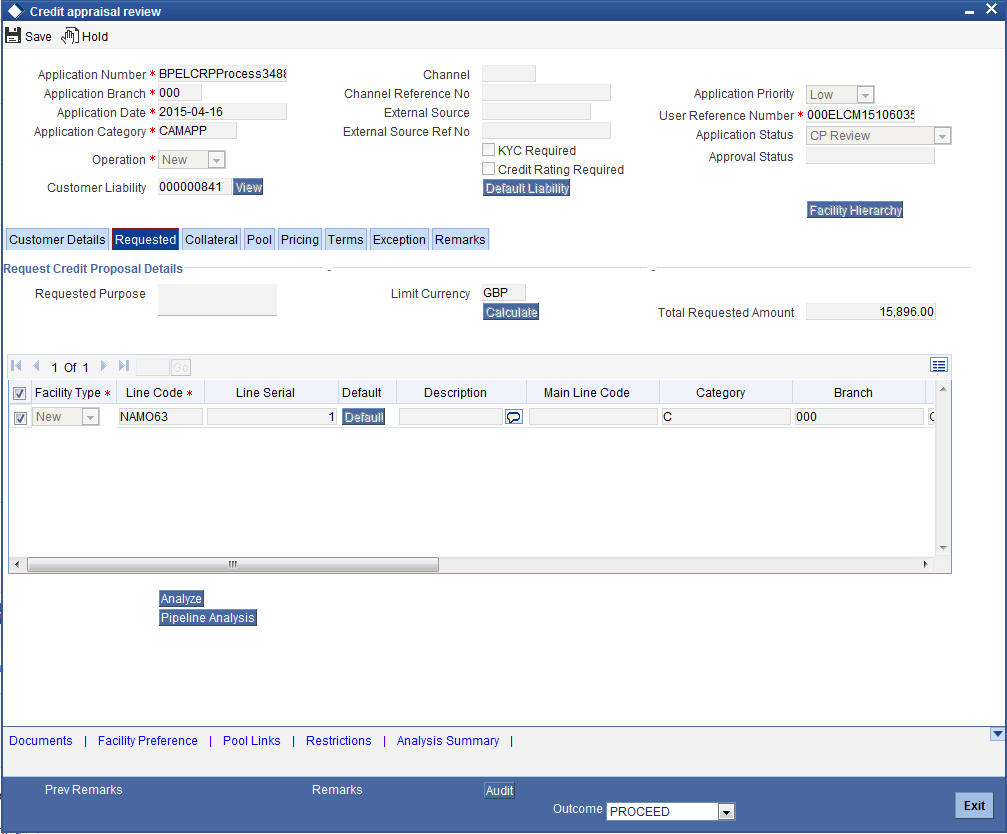 The application provides a facility to generate analytical reports based on comparison of the qualitative factors, quantitative factors, and risk factors on the pipeline facilities of prospective customers. Based on these pre-defined analytical reports, the reviewer or approver can analyse each individual pipeline facility and approve or reject the facilities accordingly. The following pipeline facility analysis reports are pre-defined in the application: