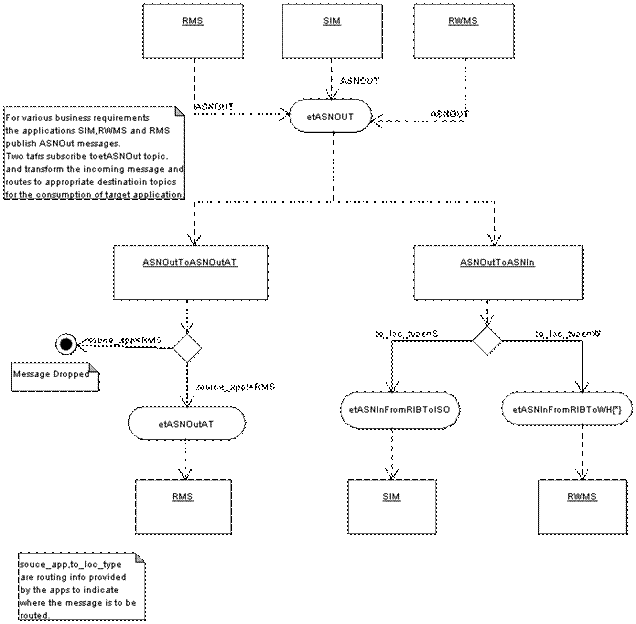 Other interested parties to the ASNOut messages, such as a merchandizing system, must subscribe to the original etASNOut topic as a separate subscriber. This TAFR is only concerned with transforming and routing on behalf of a store or warehouse system.