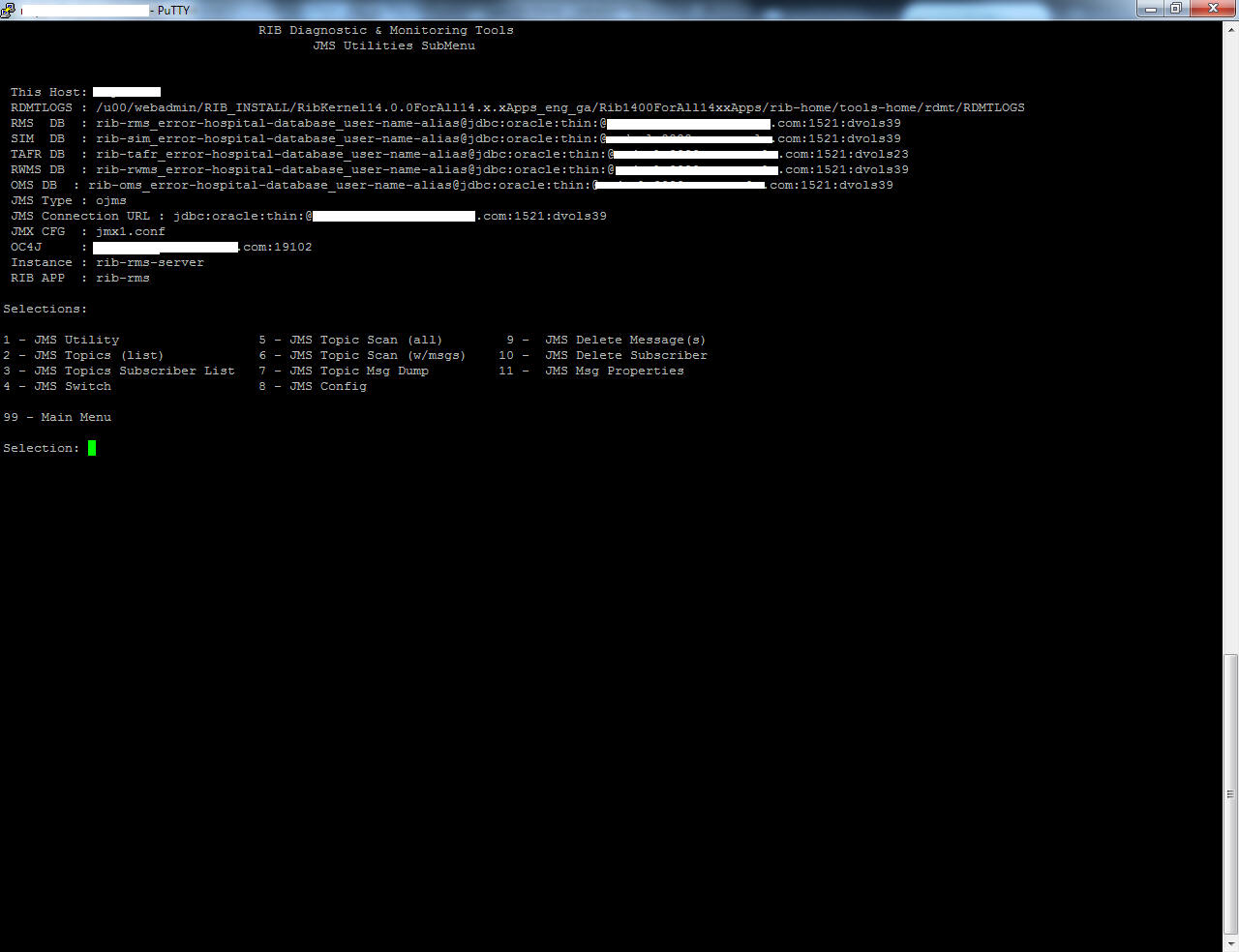 RDMT supports configuration of n-number of JMS Providers. This utility configures the values to support. rdmt_jms_submenu is used to make one the current configuration. |