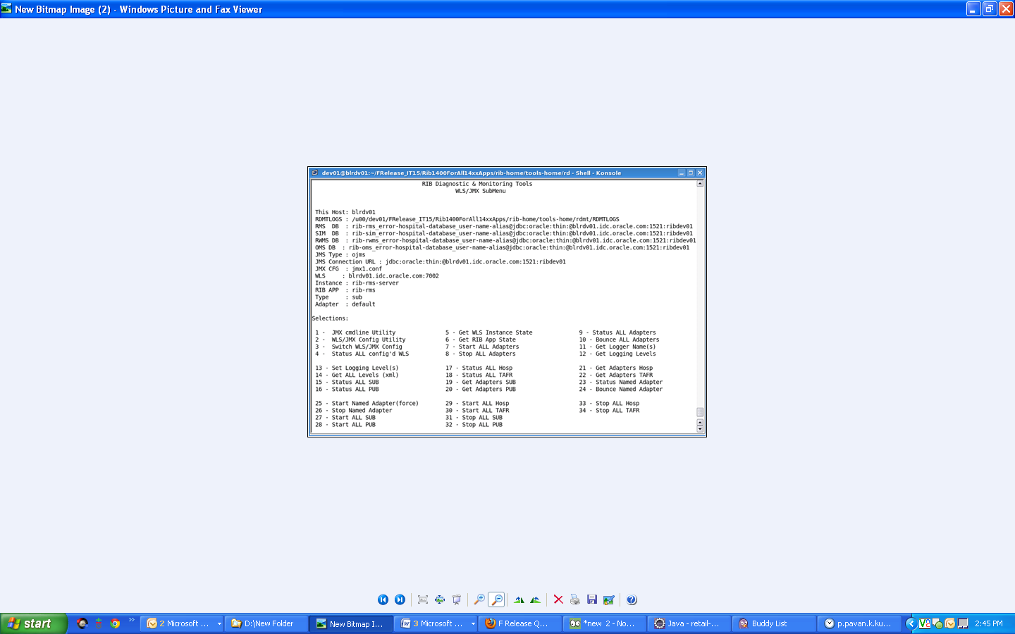This menu option exposes the various tools that use JMX to interact with the WLS instance and to control or status the current rib-<app> and its components.