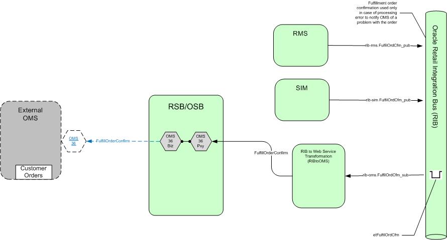 Oracle Retail supports two methods of communicating fulfillment order messages between an order management system (OMS) and RMS, via RIB or via web service. In a web service implementation, a confirmation message is able to be sent automatically as part of the architecture of a web service upon processing a fulfillment order request. However, in a RIB implementation, this confirmation cannot be sent as the RIB is considered a ‘fire and forget’ type architecture. So, in order to ensure that OMS is notified if a customer order cannot be fulfilled based on the information sent to RMS, a confirmation RIB message is generated to communicate any issues. This service takes the RIB message generated by RMS and transforms it into a web service that is readable by OMS.