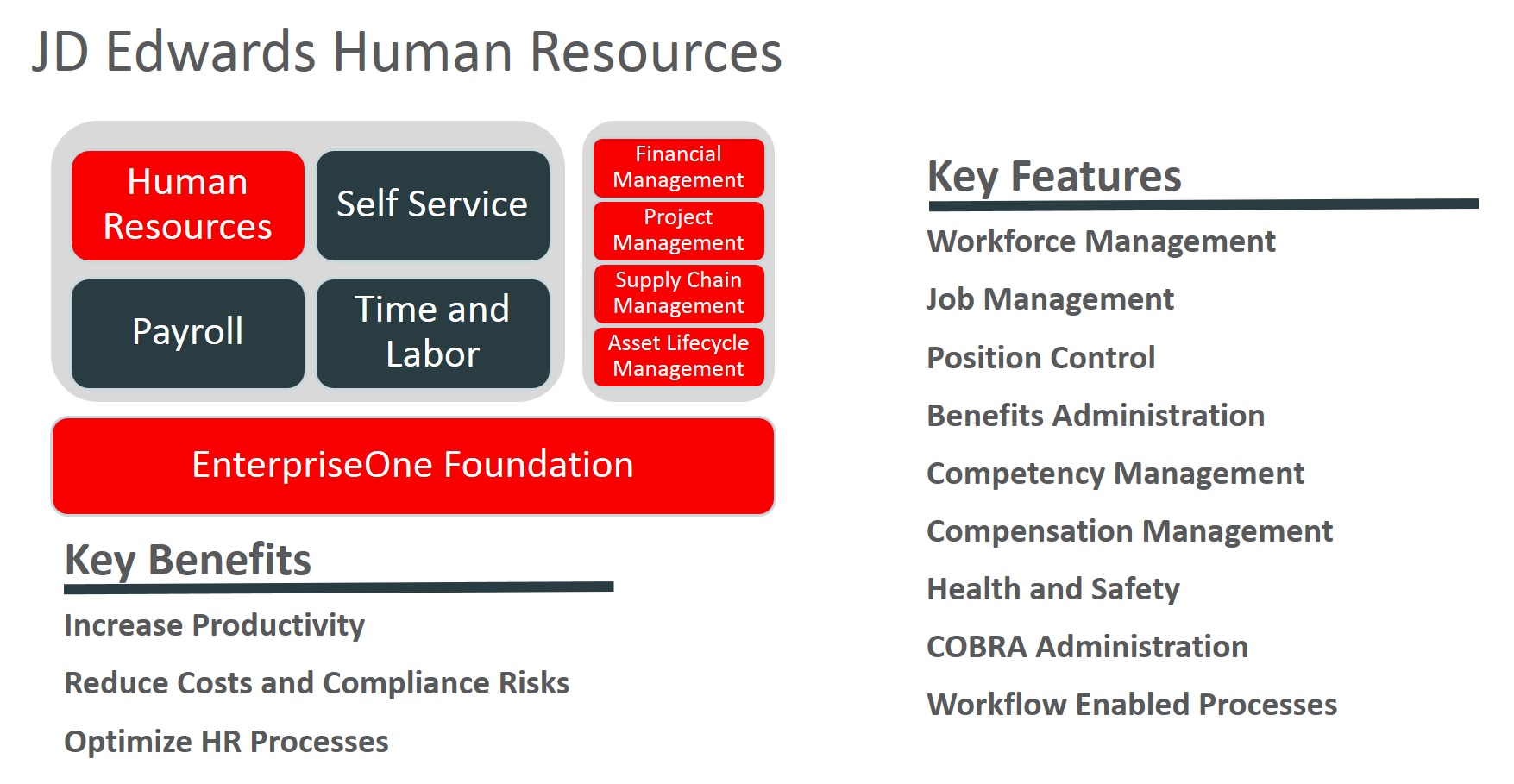Streamlines routine activities and provides consistency and accuracy to HR processes and procedures, including workforce planning, benefits administration, employee development, and competency management.