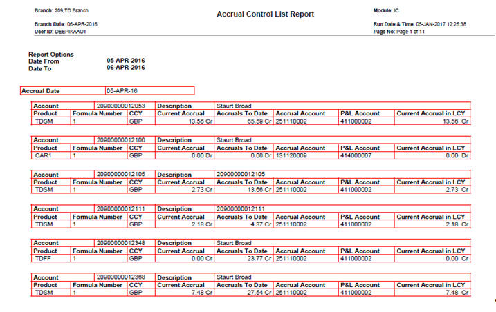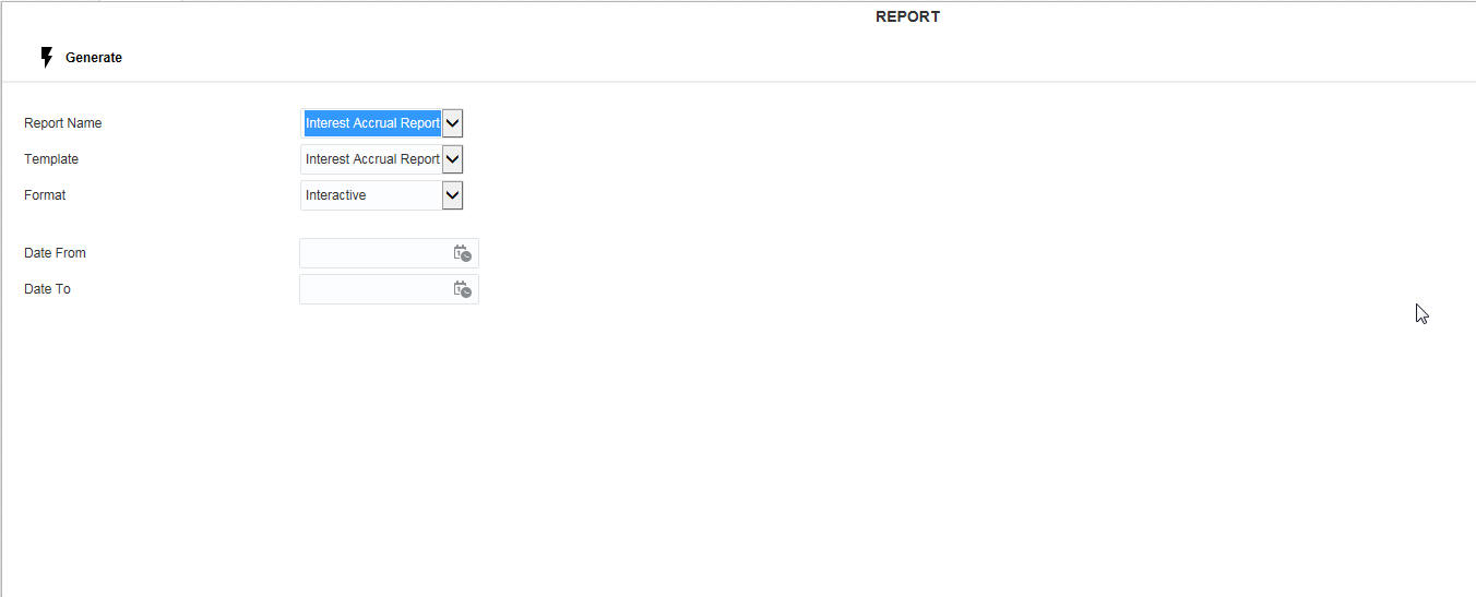This report provides the interest accrued on the account till date. You can view the Daily/Range report. Invoke the Report screen and select the report name as Interest Accrual Report.