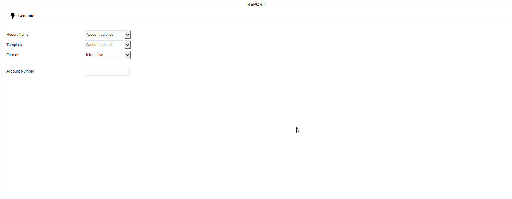 You can generate the various reports using the reports screen. To invoke the report screen, click on Reports tab on the application..