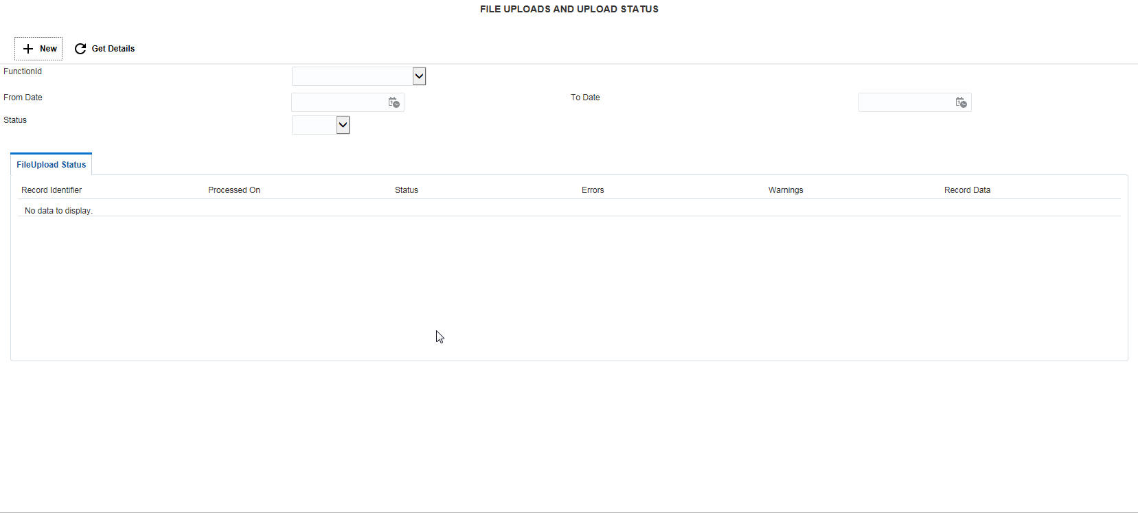 Enter the details and click Get Details button. The system displays the file upload status for the selected criteria. You can view the following details for the upload: