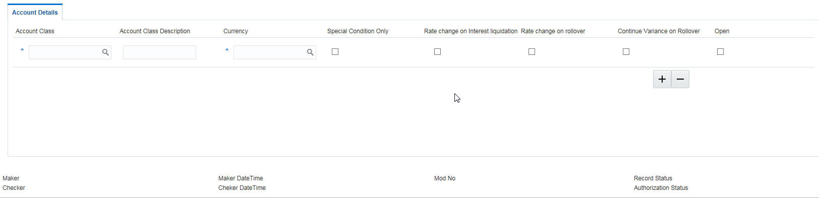 Specify the account class.You can select the account class from the option list. The list displays all the account classes maintained in the system
